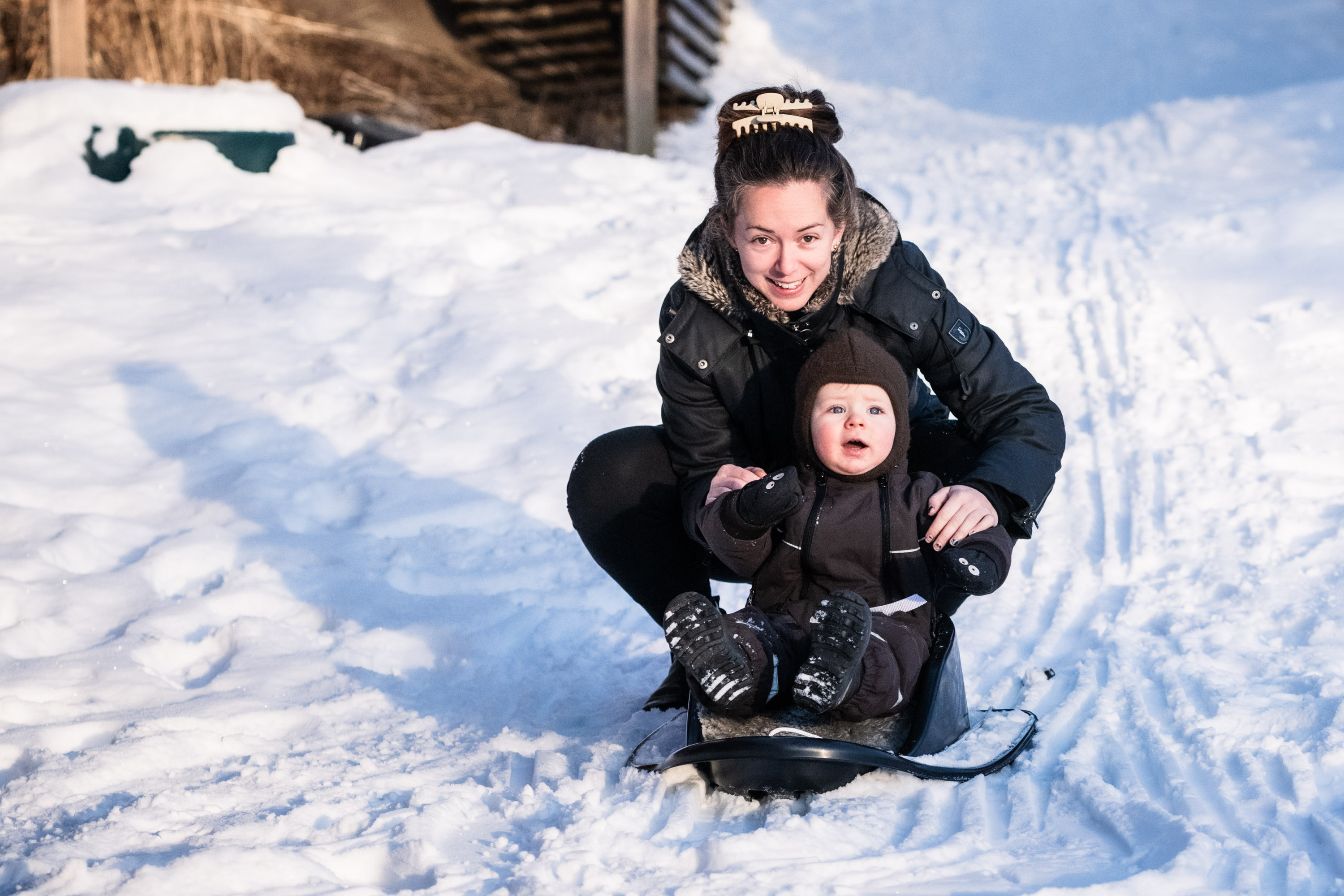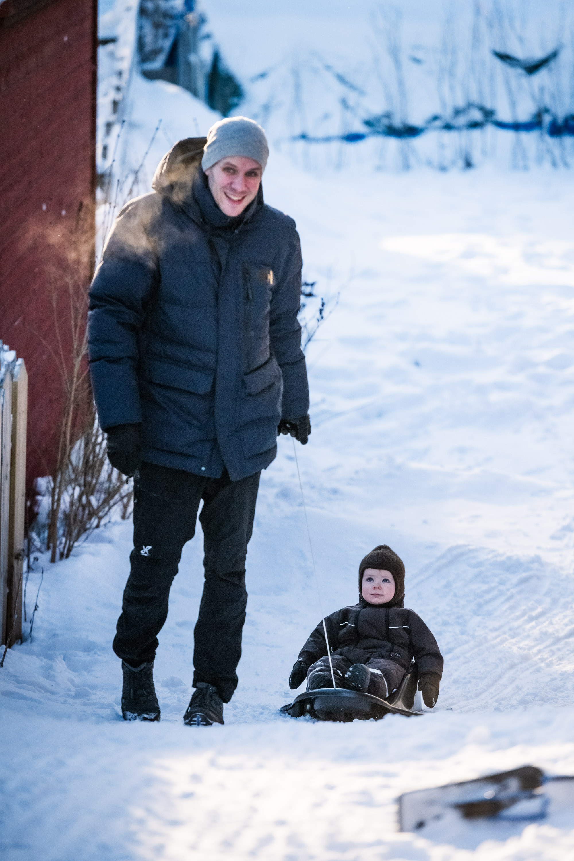 Istället fick det bli en sväng till Velamsund med Adam för lite lek i snön trots att det tyvärr börjat töa.