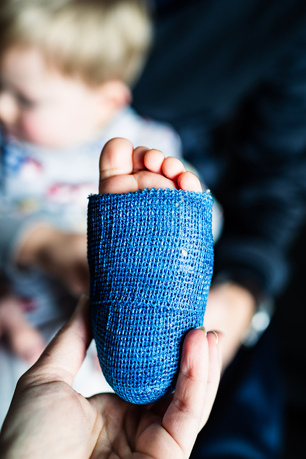 Själva proceduren på sjukhuset tog inte mågna minuter. De kom in med en speciell maskin som “sågade” itu gipset och ljudet var inte Adams favorit. Han grät sig igenom det hela, men återhämtade sig ganska snabbt när det var över.