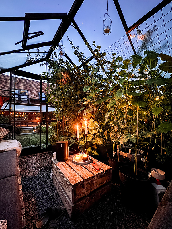 På kvällen gick jag ut och satte mig i växthuset med min laptop och Sonos för att dränka ljudet av snorungar som lekte ute till sena natten.