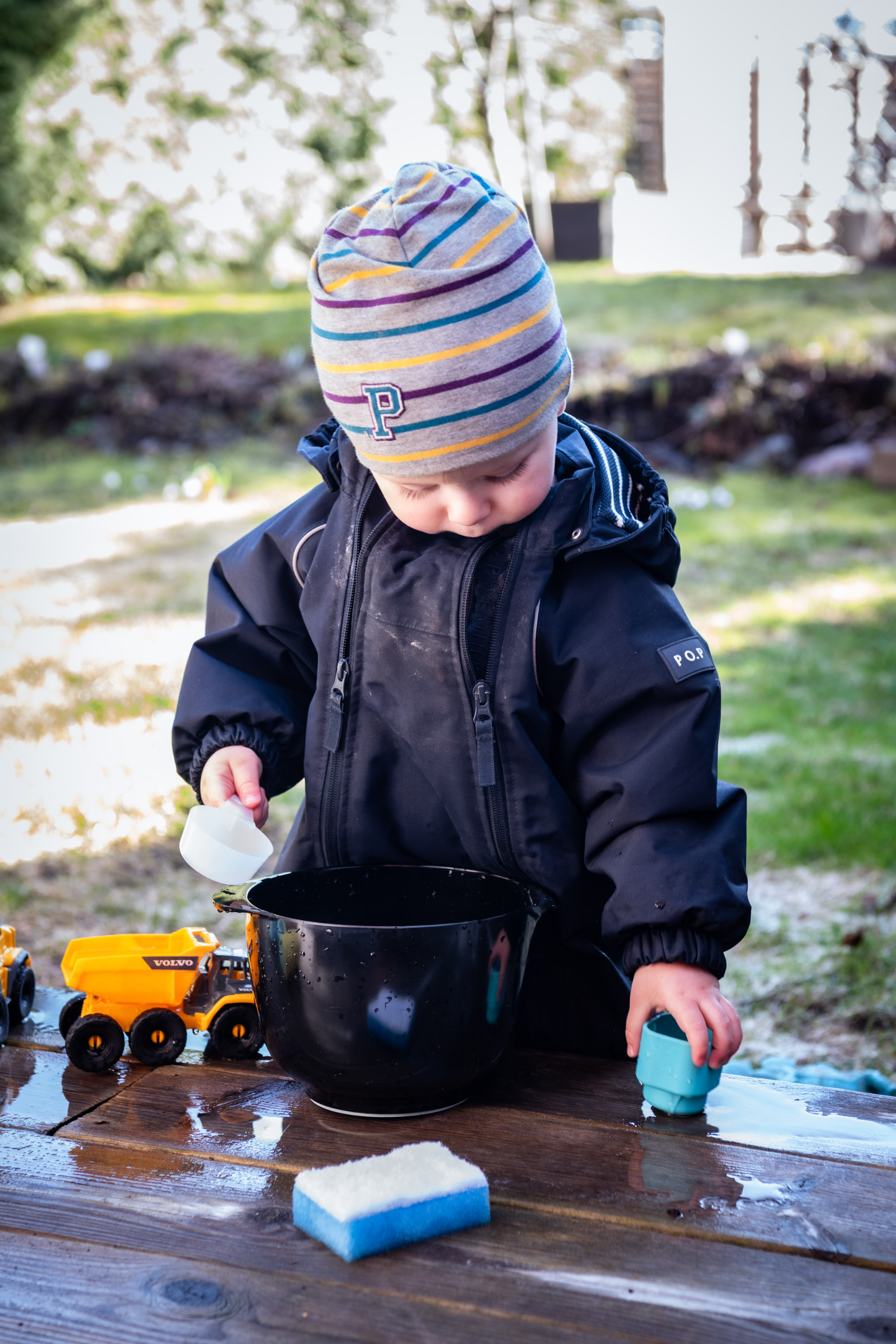 Jag hade en något mer romantiserad bild av det hela där vi njöt i solen och hade mysigt tillsammans. Istället blev det smått kaosartat med Adam som sprang omkring och snubblade både upp och ner från trallen. Dessutom skulle han pilla på grillen heeela tiden eller gräva i jorden.