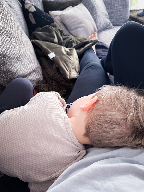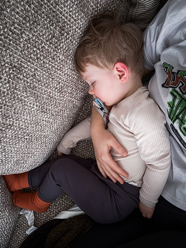 På kvällen byggde vi en liten koja i Adams säng där vi myste lite innan det var dags att sova!