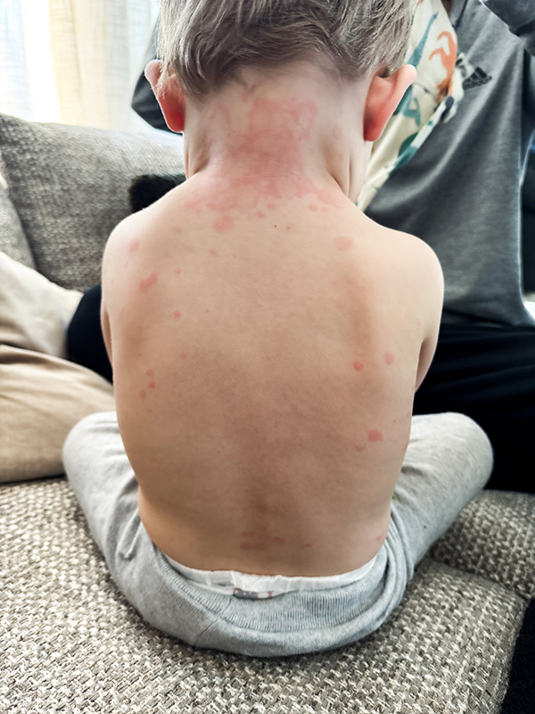 Adam vägrade äta och dricka innan vi åkte iväg och i väntrummet kämpade vi med att få i honom lite banan… Men, är man så där sjuk vill man förmodligen inte äta heller.