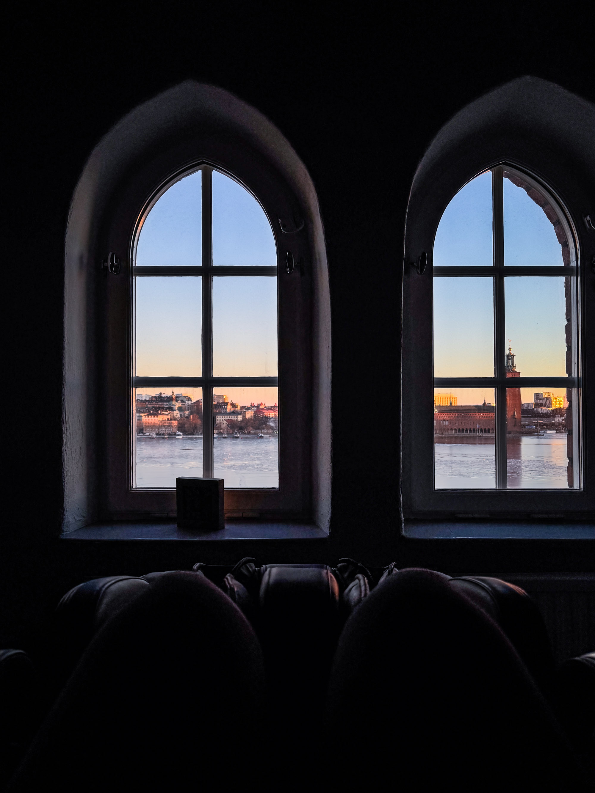 När jag klev in på vår våning var inte ens lamporna tända än och jag bestämde mig för att åka upp ett par våningar till massagestolarna. Här slog jag mig ner i en halvtimme och såg Stockholm vakna till liv genom de små charmiga fönstren.