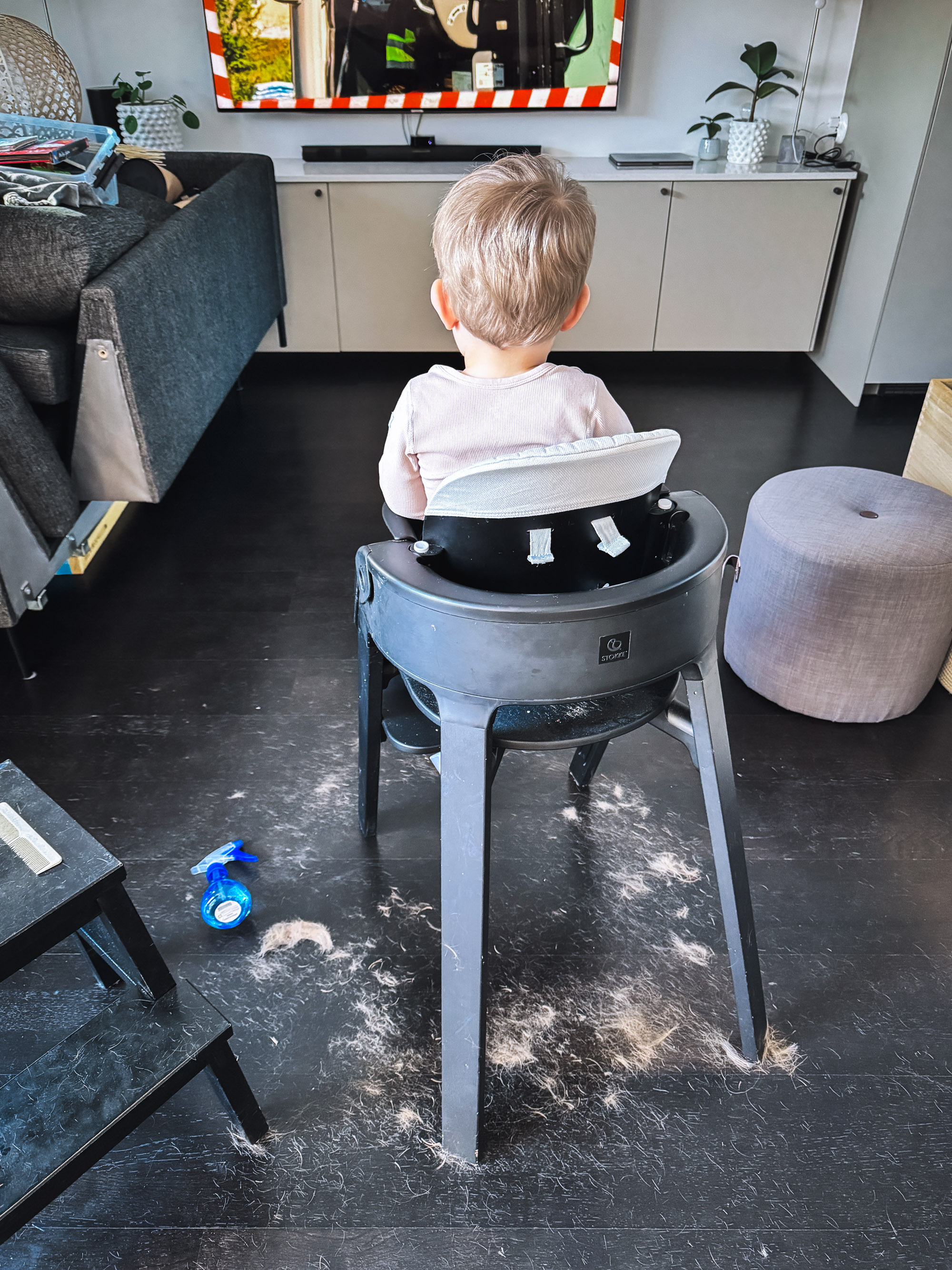 Det blev inte många knop gjorda idag, men vi hann klippa Adam och bada med honom och själva klippandet var inte en dag för sent ^^ Herregud hur han såg ut...