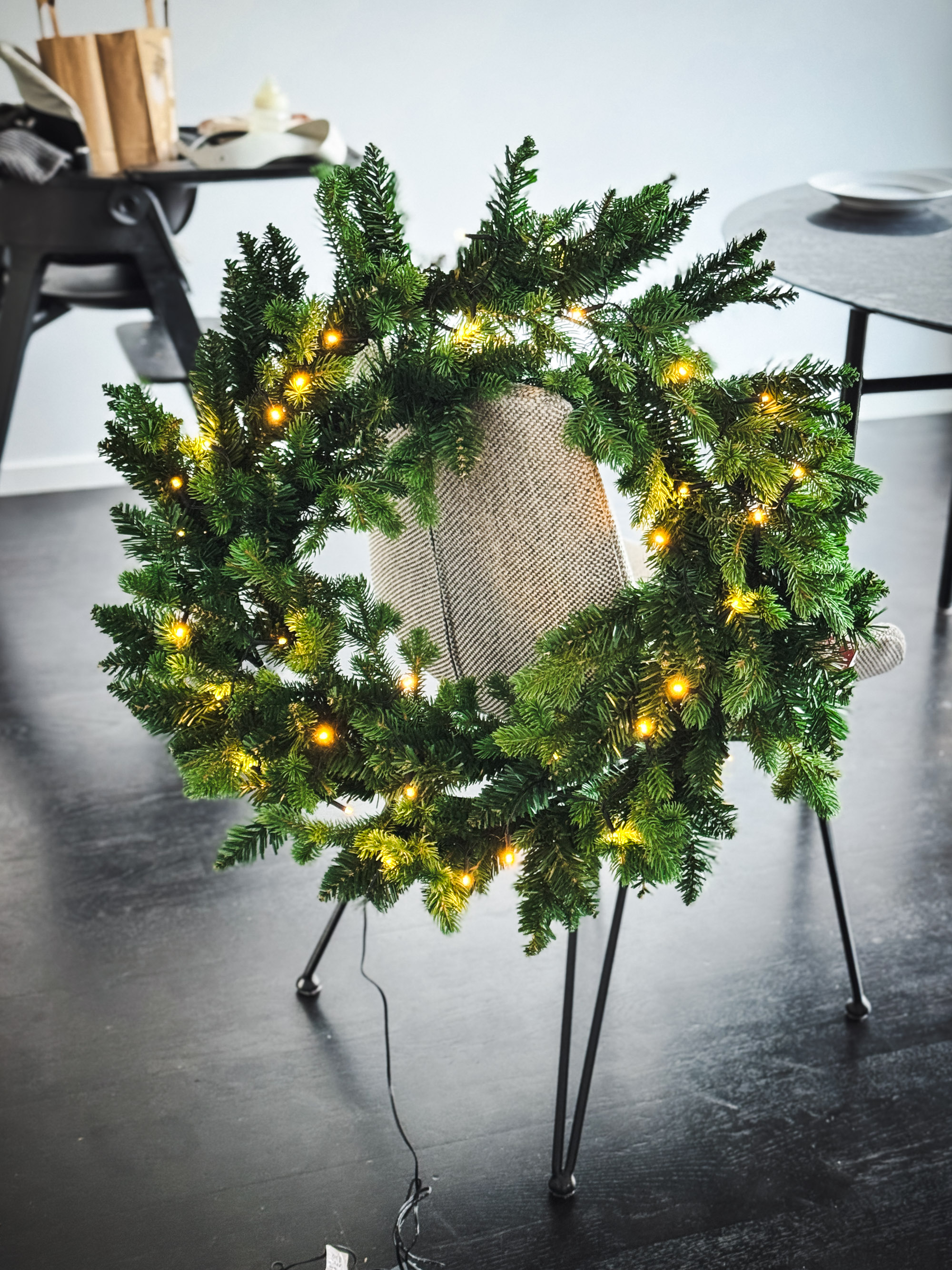 Efter att vi alla fått mat i magen, kunde vi ännu en gång fortsätta och plugga alla hål som nu skulle borras. Snart var det dags att hänga upp allting, men det fick vänta tills Adam somnat för kvällen.