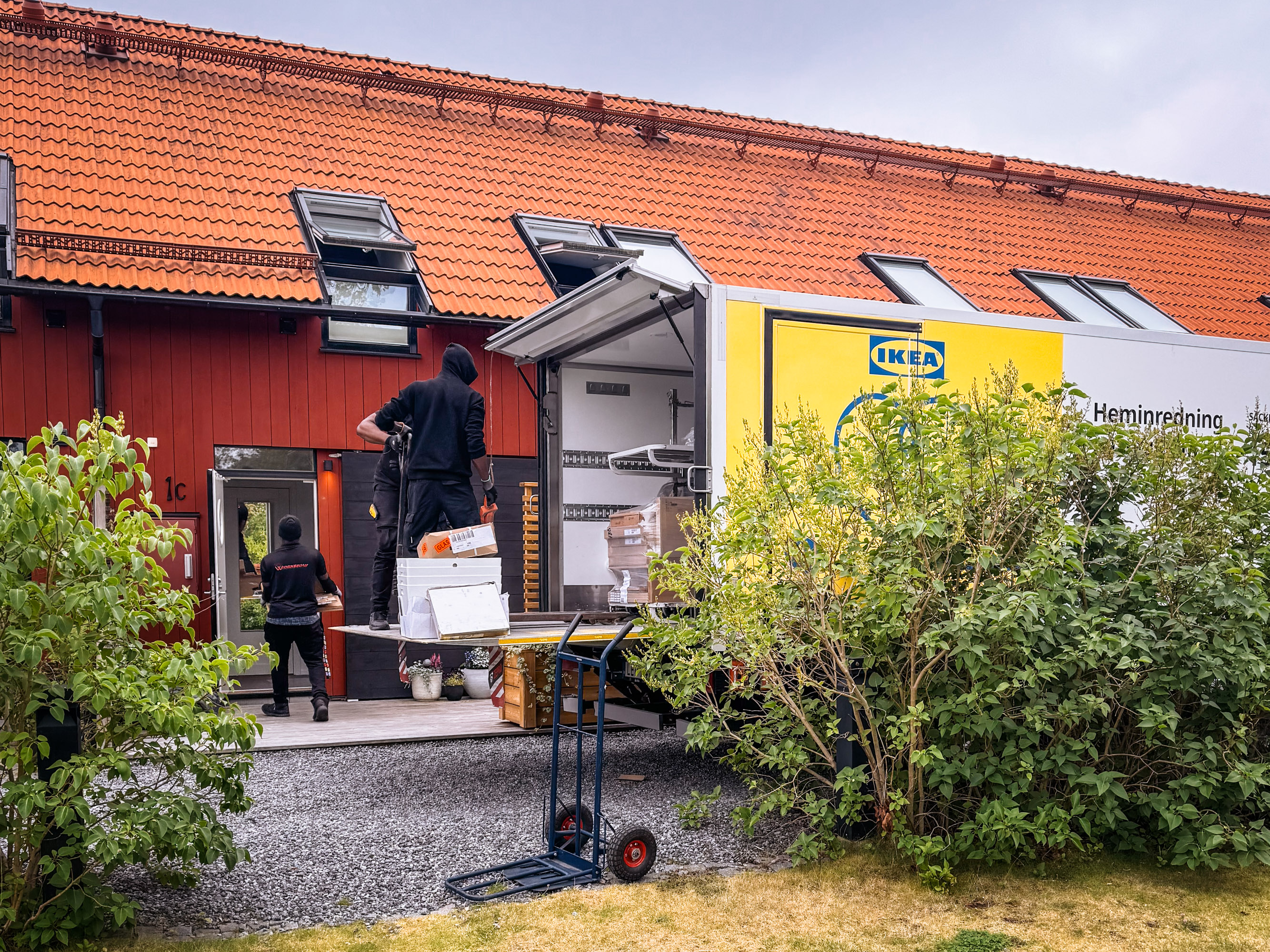 Adam vaknade lagom till köparna av köket körde in på gården, och vi satte igång omgående. De tittade inte ens på köket, de började bara bära in det i lastbilen. Sonen, Sam, hade köpt köket till sina föräldrar och pappan var med och monterade ner stommarna. Med sig hade de även sin granne som tidigare hållit på mycket med div. bygg och snickeri. Lite gaggig kanske, men trevlig.