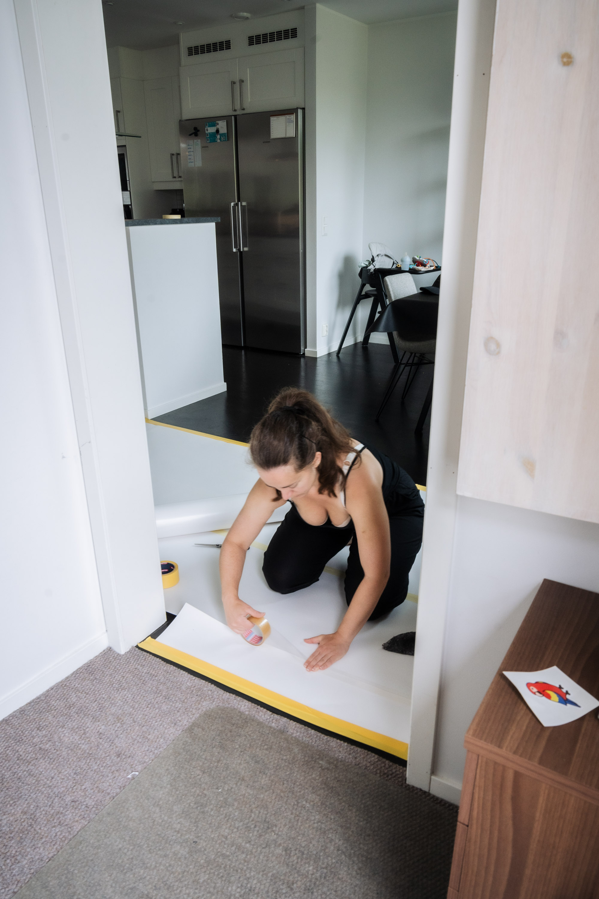 Johan gick in lite i rollen av en byggledare, pekade och visade med hela kroppen vart de skulle ta tag och hur de skulle göra. Stomme efter stomme plockades bort, men den där jävla bardelen… Herregud vad de slet med den ^^ Laminatskivan var limmad utan dess like och till och med med hjälp av en kofot gick det knappt att få bort den. Hela undersidan blev förstörd och jag skämdes nästan för hur illa det såg ut. Men, de skulle använda den biten till fönsterbrädor så de var inte alltför oroade.