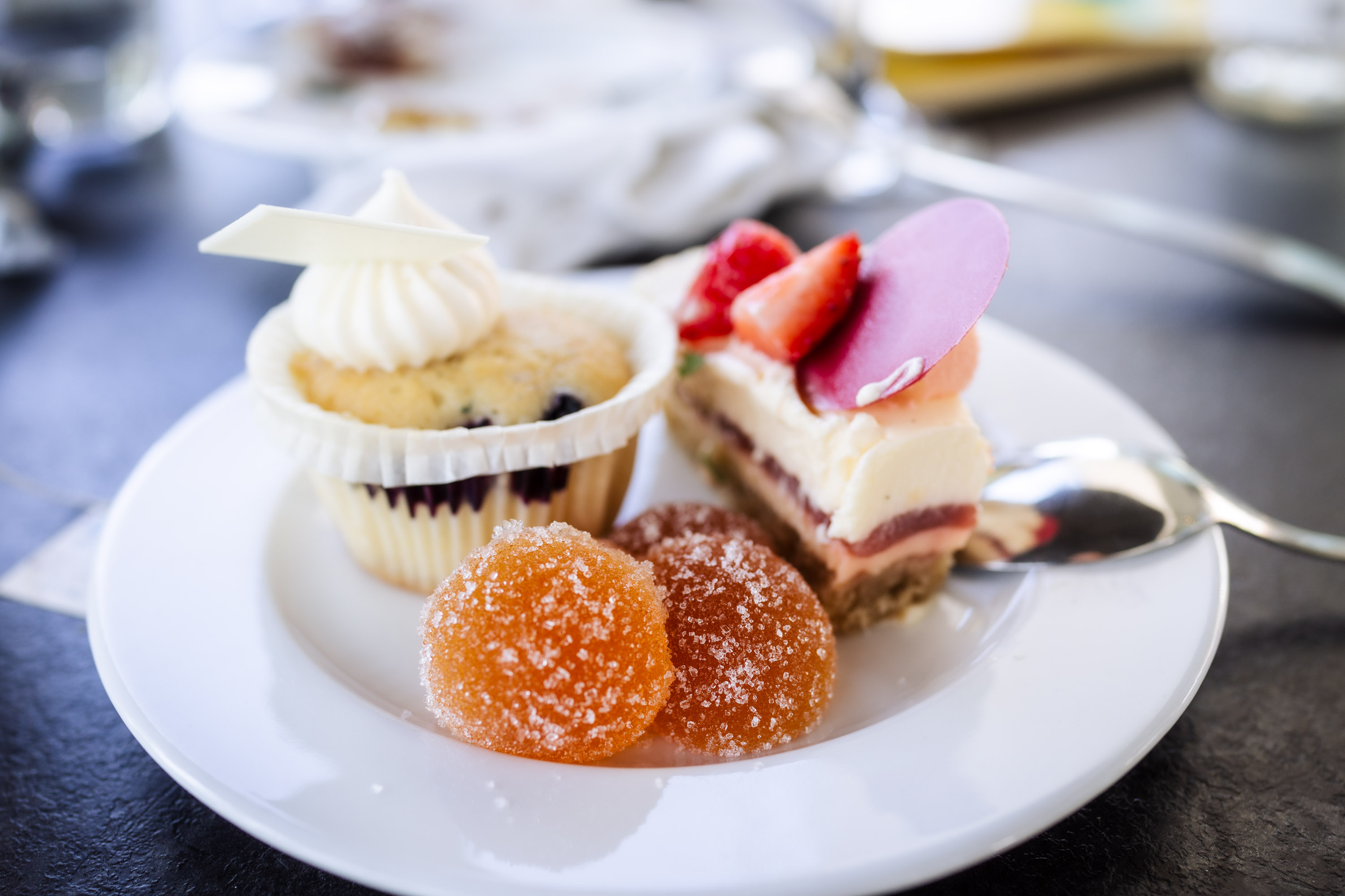 Väl uppe i deras lounge igen var det dags för deras efterrättstorn och deras klassiska Madelienekakor. De bjöd mig även om en extra bit tårta då de ansåg att ett år som mamma och nytt jobb var värt att fira!