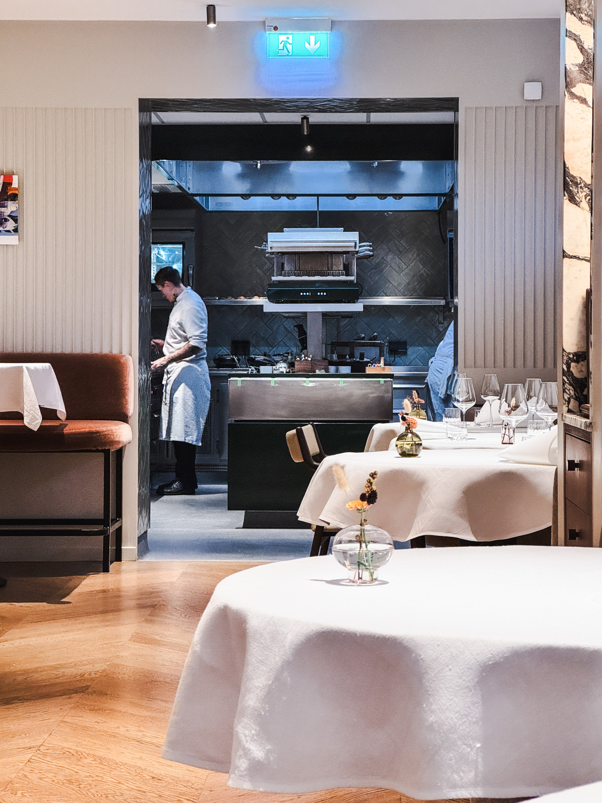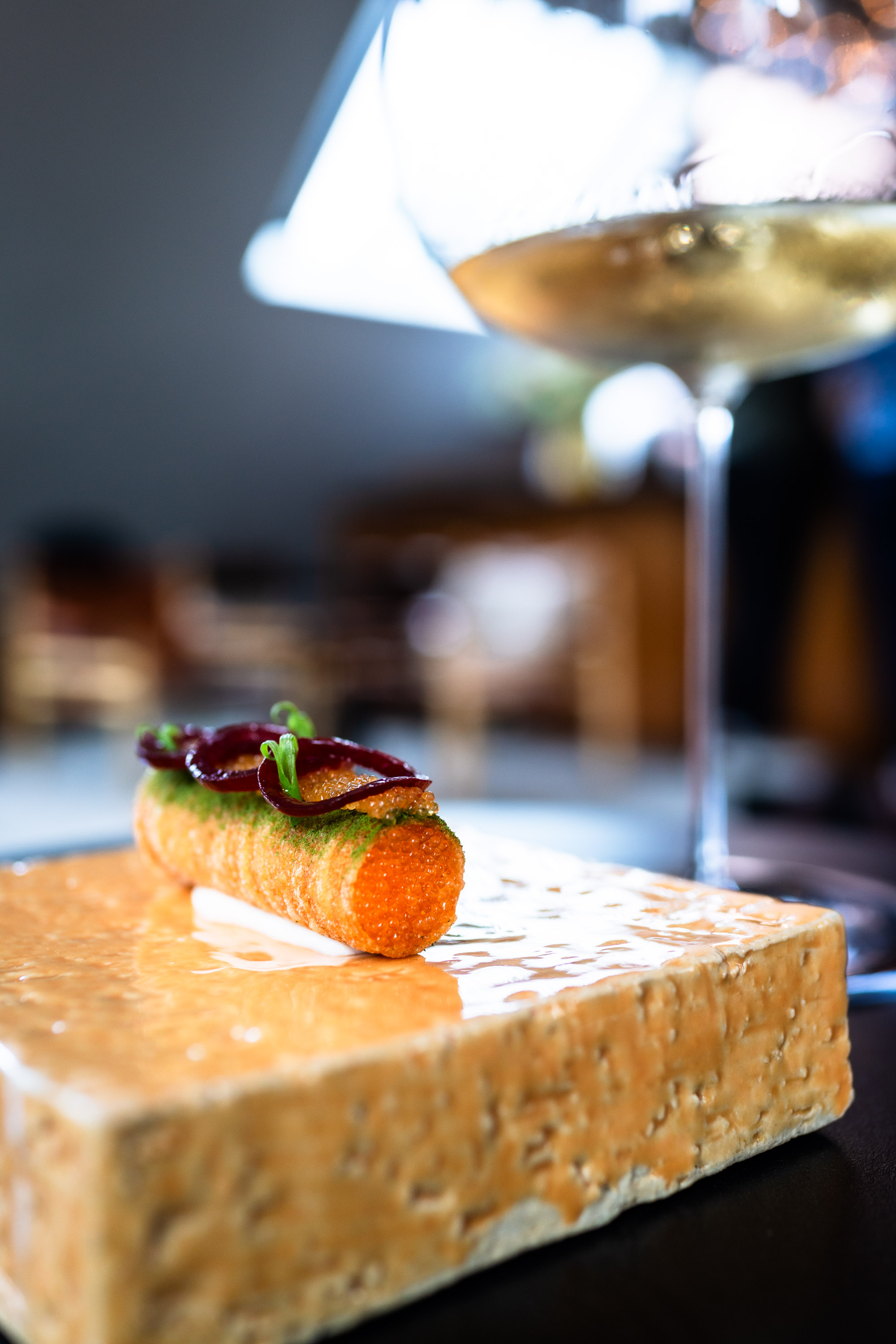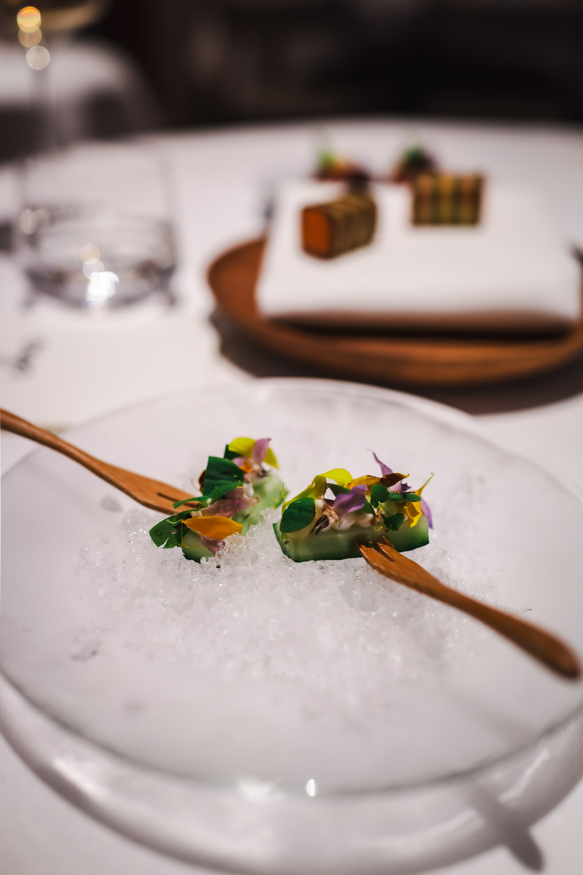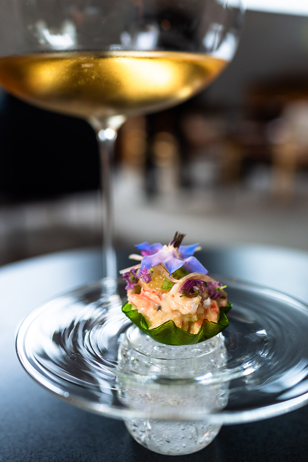Jag var lite nervös över att vara ensam på Frantzén, jag vet ju hur deras rutin är. Man välkomnas upp till deras lounge där man erbjuds champagne och små tilltugg innan man sedan rör sig ner till själva restaurangen. Att sitta där uppe, ensam, var läskigt. Alla minglade med antingen en respektive eller sitt sällskap och där satt jag, ensam i min fotölj och studerade alla andra.