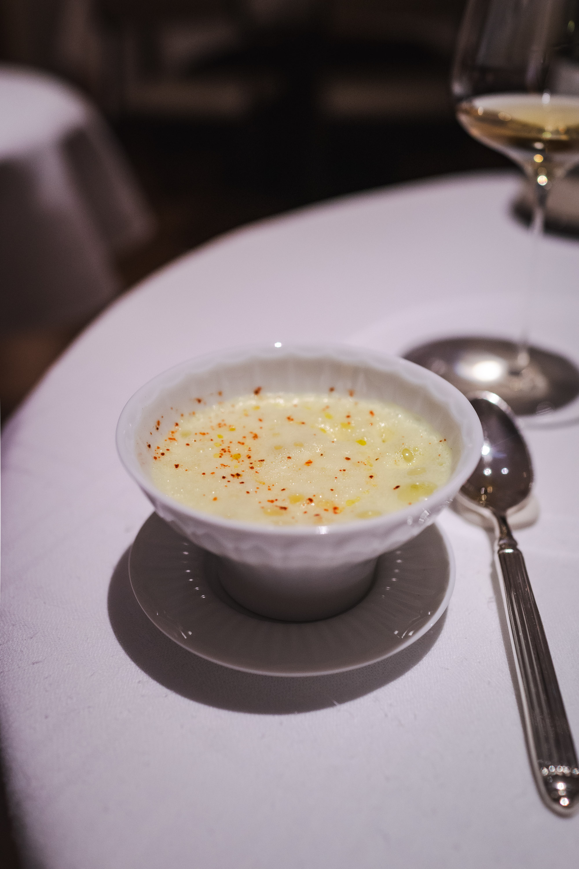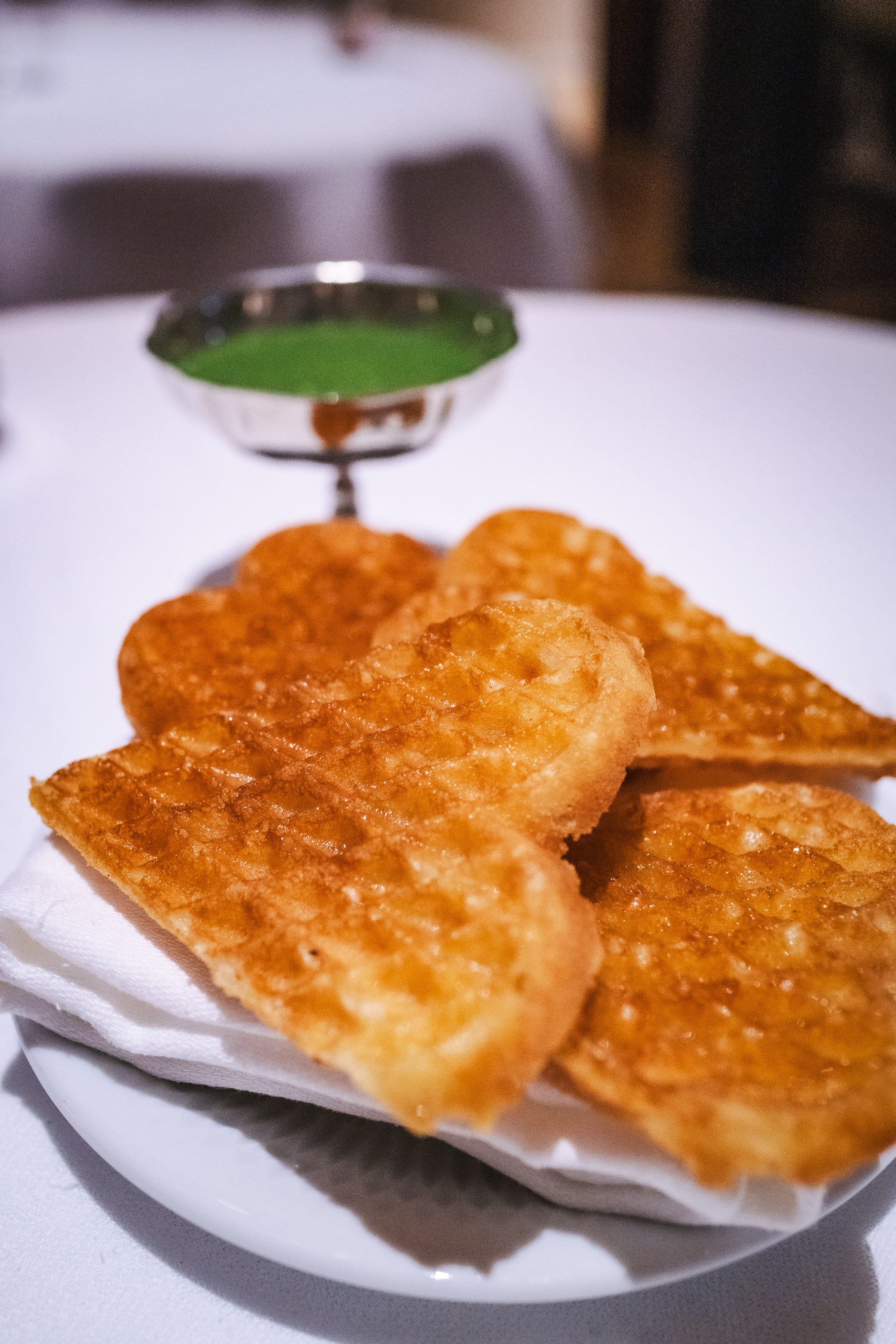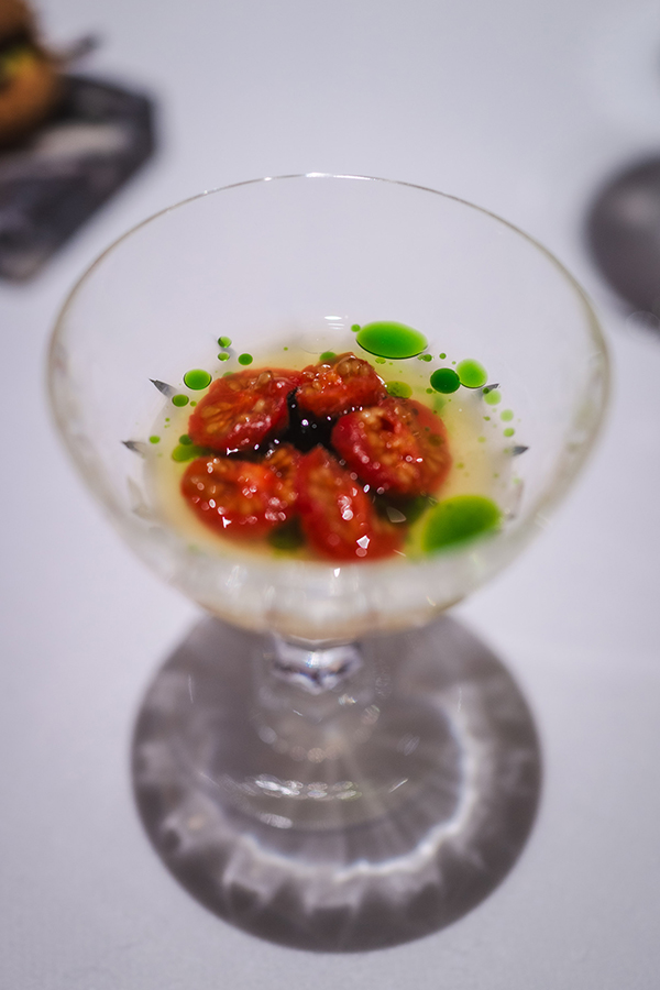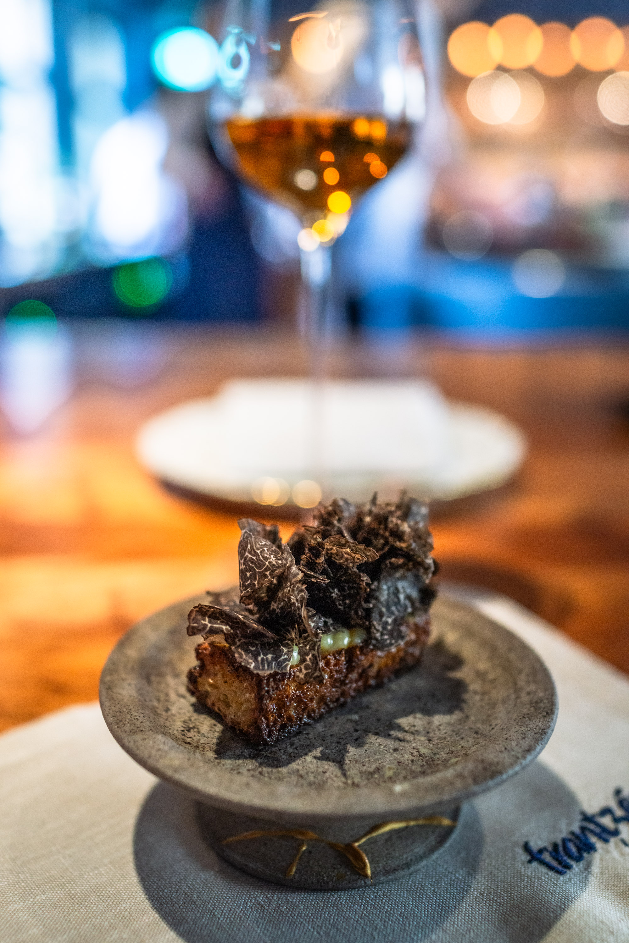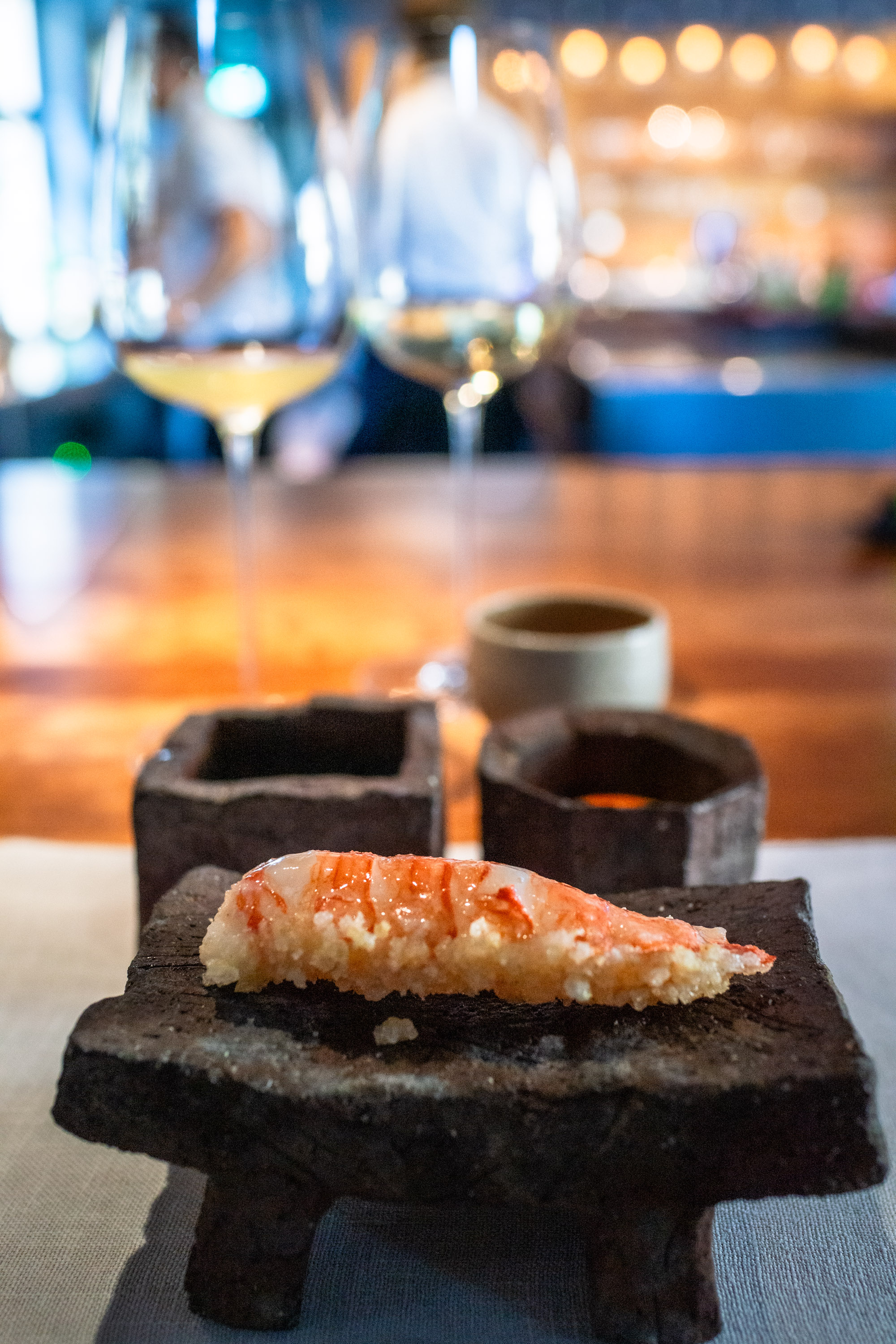 Jag var lite nervös över att vara ensam på Frantzén, jag vet ju hur deras rutin är. Man välkomnas upp till deras lounge där man erbjuds champagne och små tilltugg innan man sedan rör sig ner till själva restaurangen. Att sitta där uppe, ensam, var läskigt. Alla minglade med antingen en respektive eller sitt sällskap och där satt jag, ensam i min fotölj och studerade alla andra.