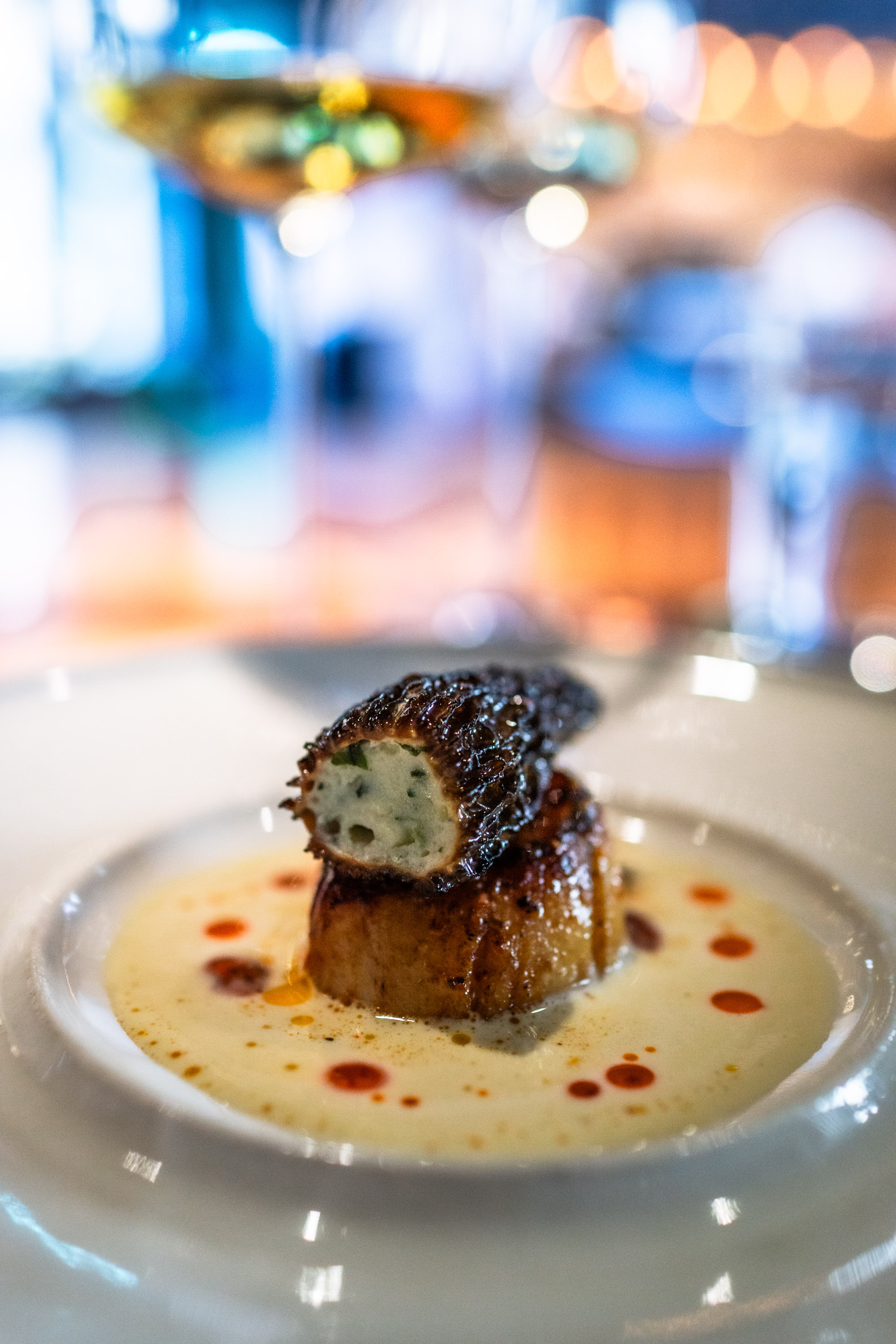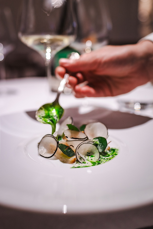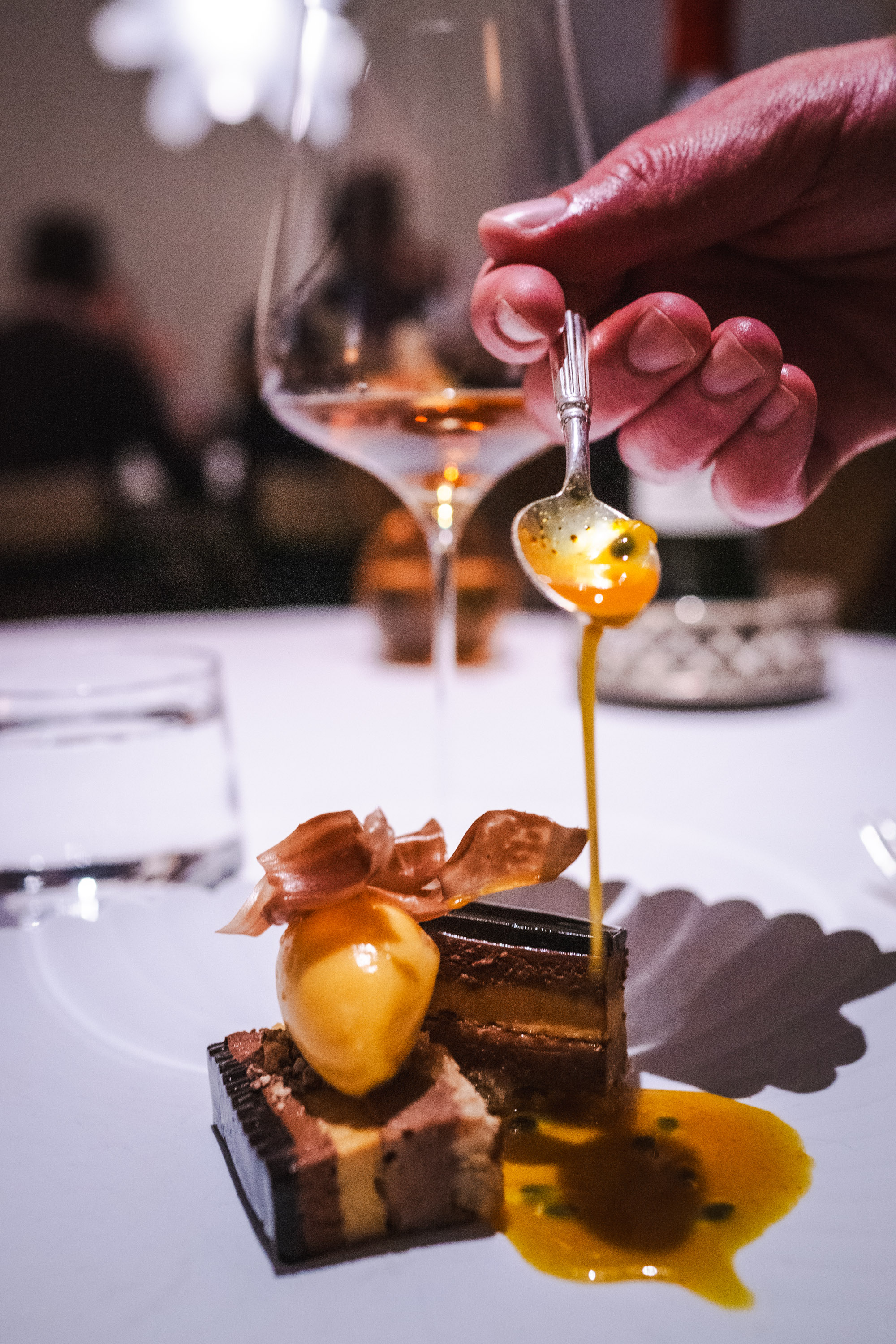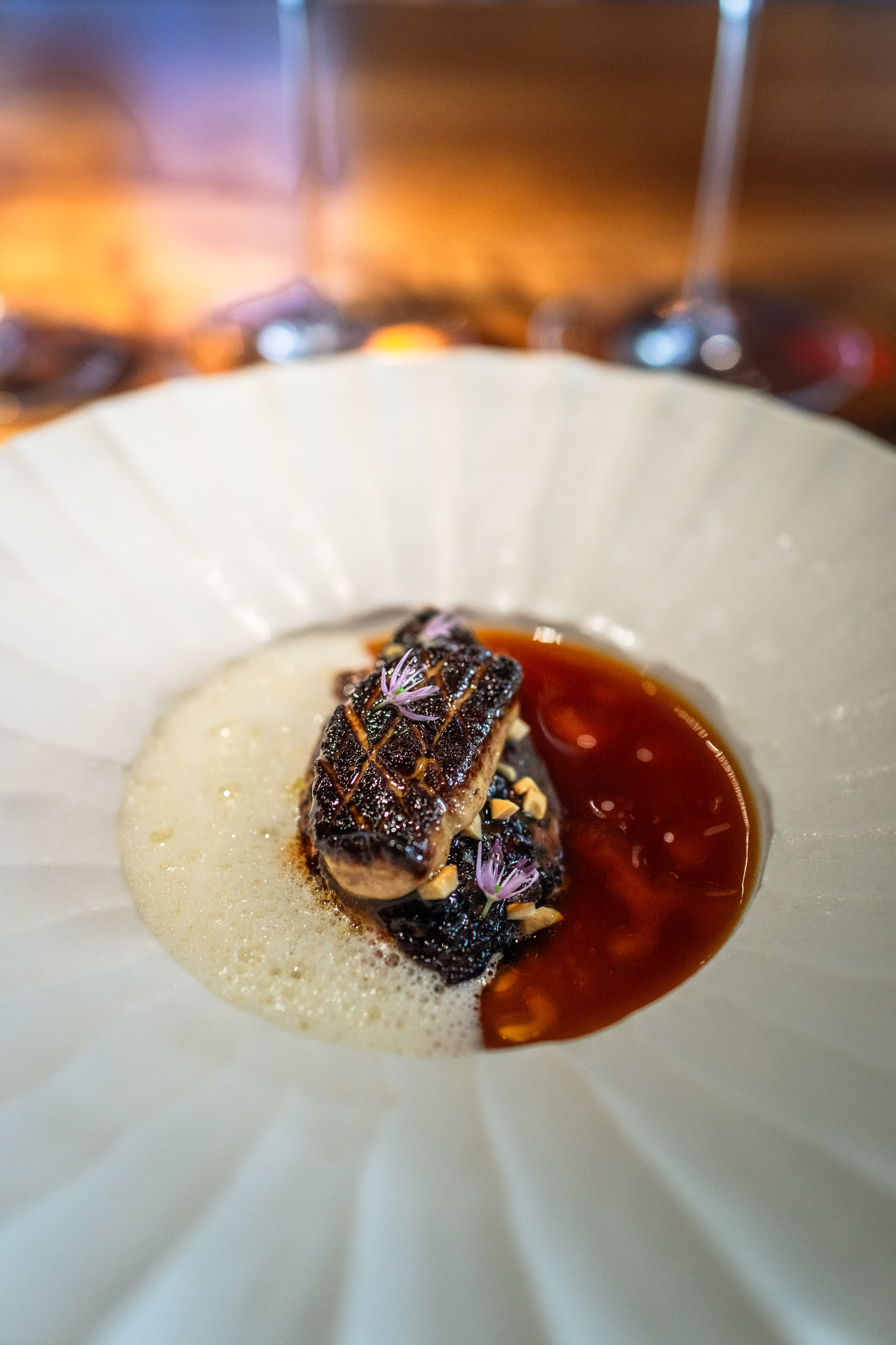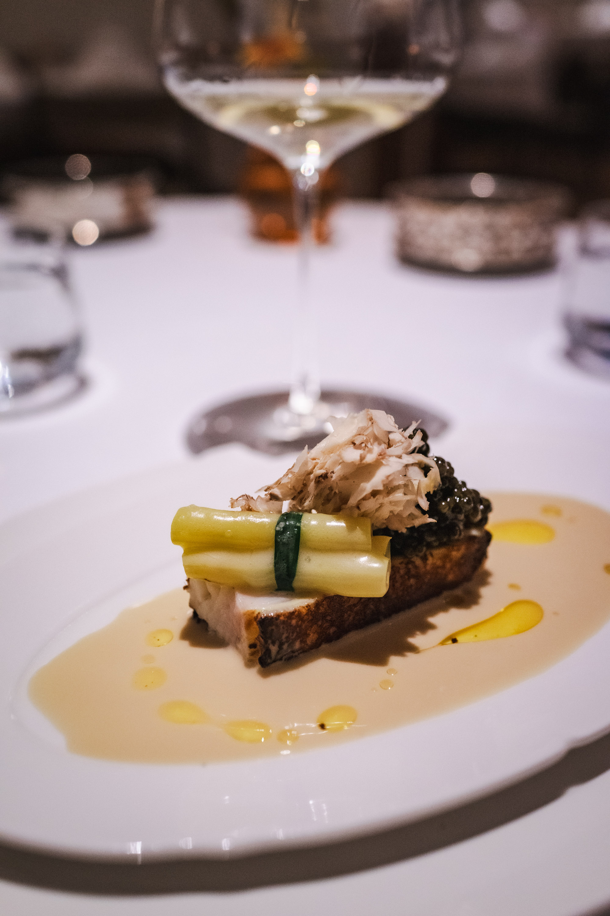 Sedan fortsatte en fantastisk middag där glasen fylldes på med fantastiskt parade viner. Jag föll pladask för en Riesling som de serverade och det glaset fick jag behålla genom hela min sittning då de fyllde på den lite smått hela tiden