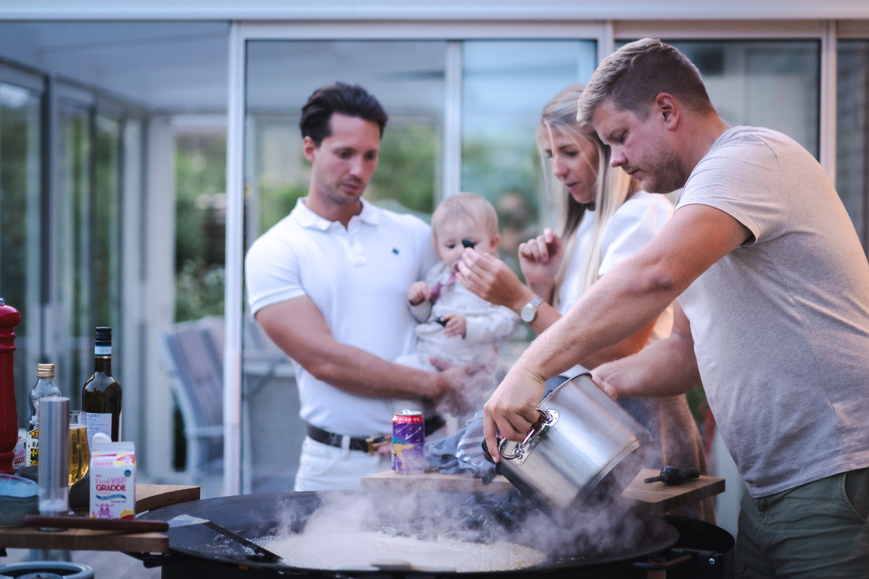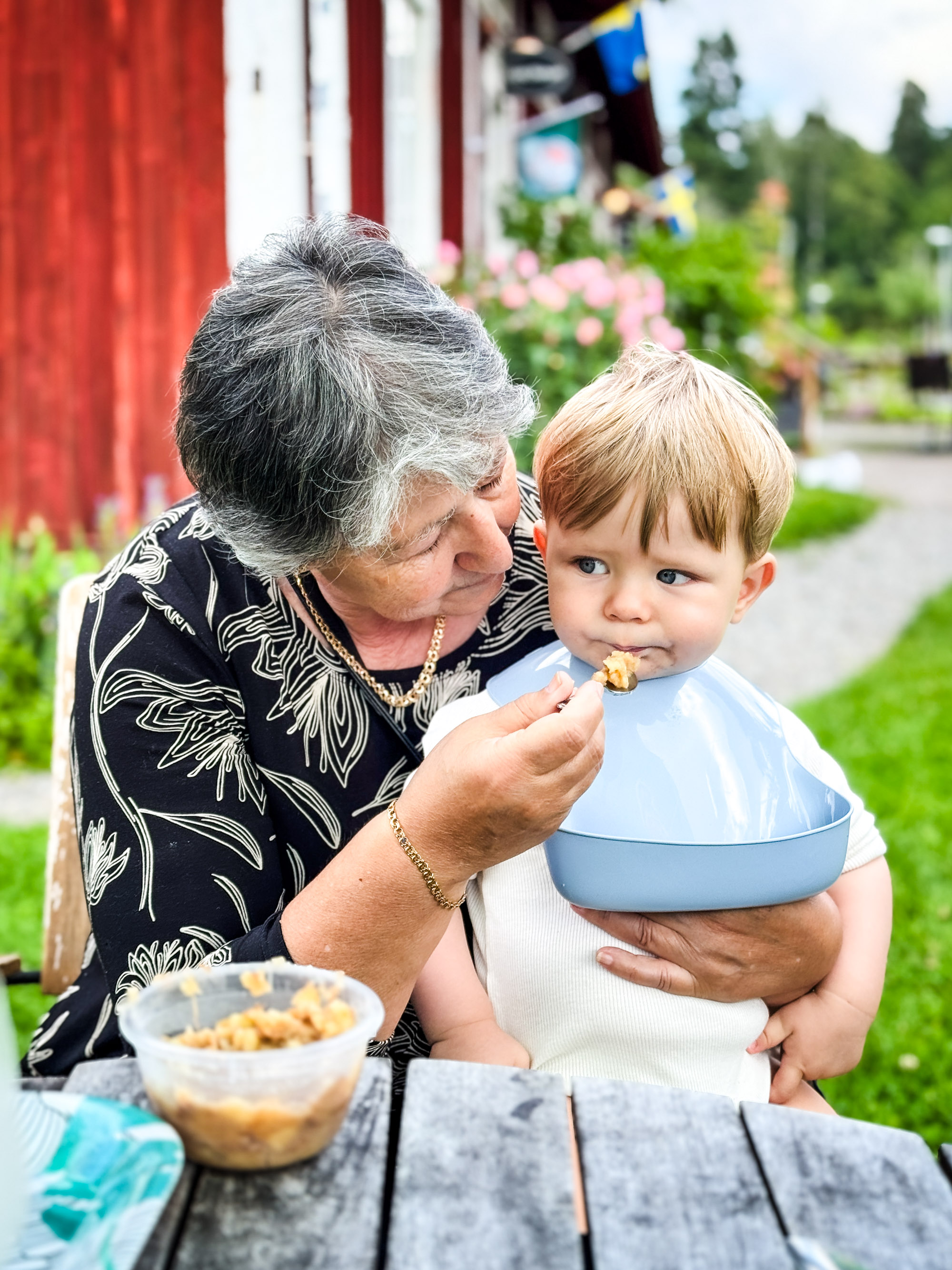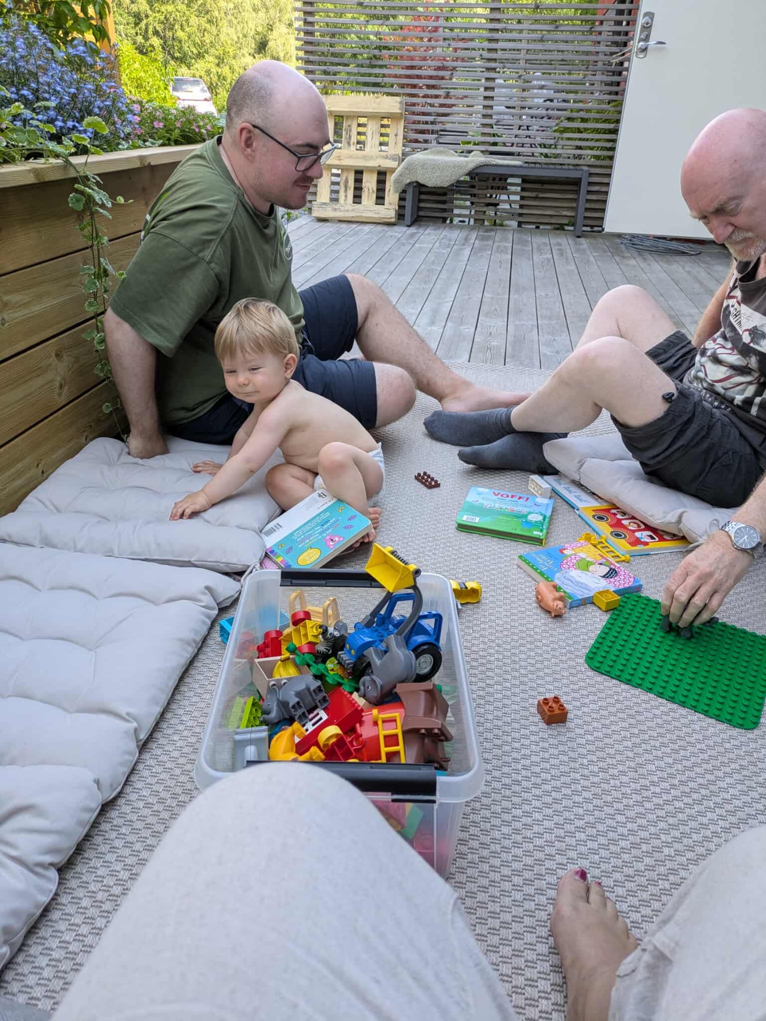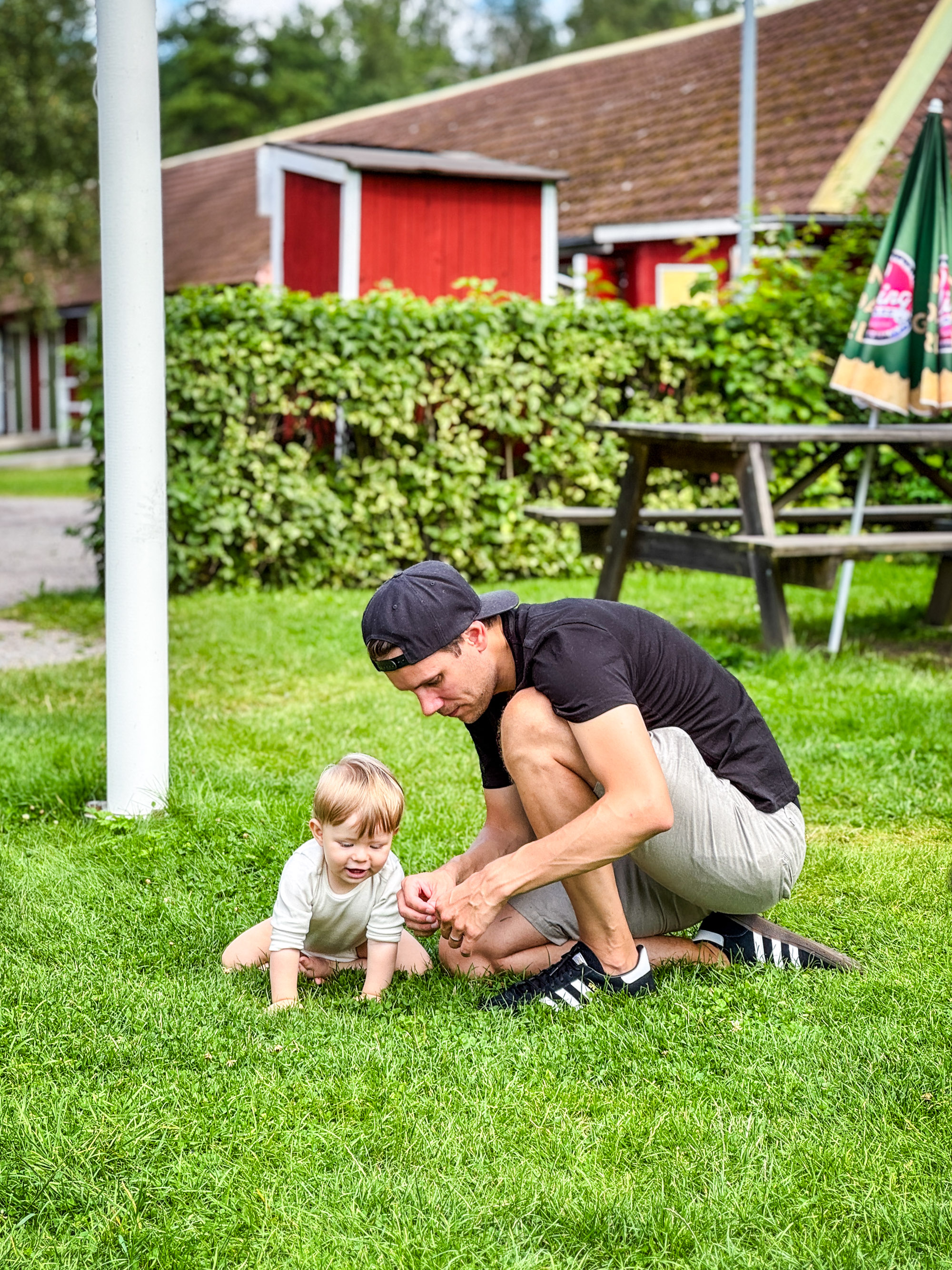 Hemma hos Robert och Amanda anslöt Susanna och Doglas med Isabelle, samma par som vi firade midsommar med. Lilla Isabelle är drygt en månad yngre än Adam, men hon är redan uppe och går.