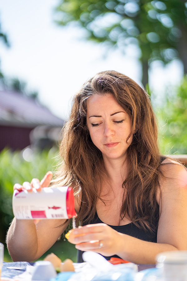 Dagens lunch blev jordgubbar med keso och vaniljkvarg, något som verkligen gick hem hos Adam… Vem hade kunnat tro det.