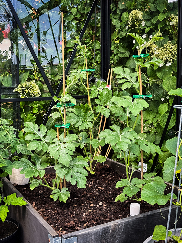 Jag fick dona lite i trädgården och fick efter väldigt mycket krångel upp ett nät i taket i växthuset. Mina melonplantor växer så det knakar och de har ingen mer stans att klättra än i taket.