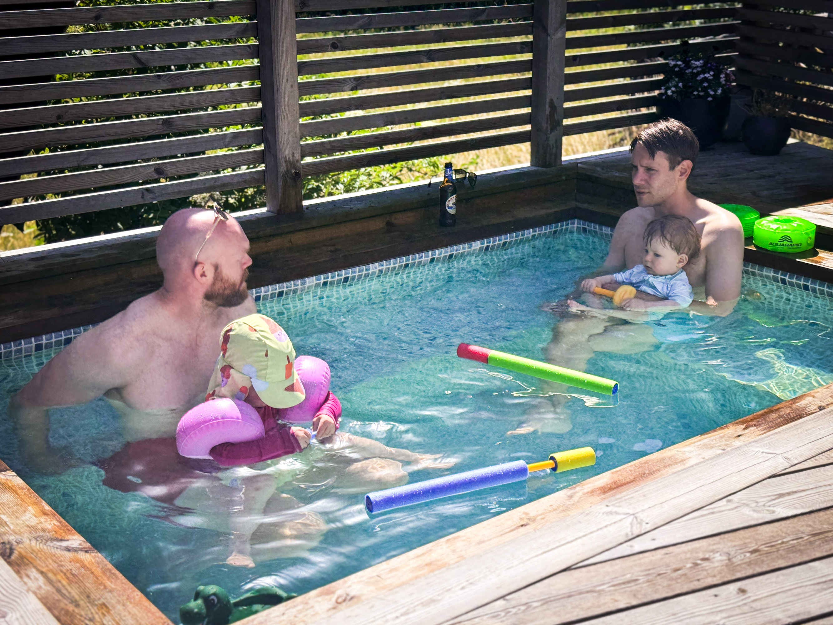 Efter lunchen dök Björn och Amanda upp med sina barn. Vi hängde vid poolen och hade det skönt i det varma vädret. Vi mumsade på jordgubbar, grädde och myntasocker och allt försvann i ett naffs ^^