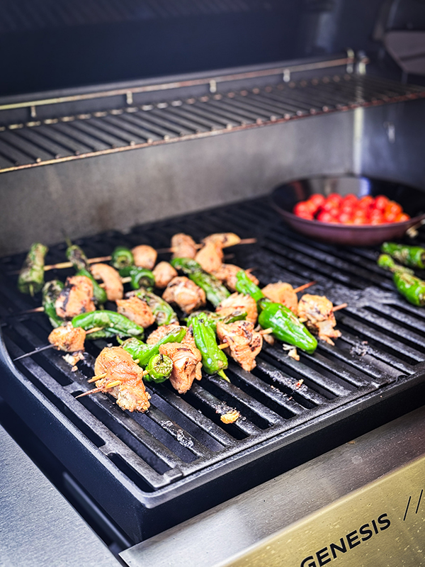På kvällen grillade vi kycklingspett med padrons och lite annat smått och gott och självklart fick Adam äta detsamma som oss. Han fick en egen tallrik med grillad kyckling och tzatziki som gick ner!